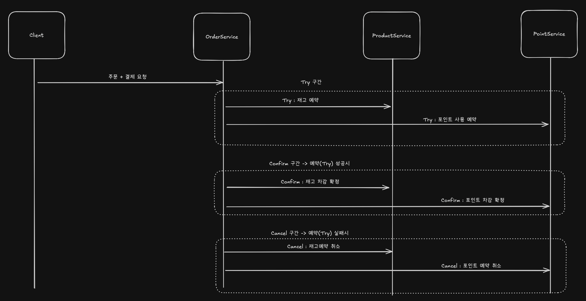 - Try, Confirm, Cancel 각 단계는 예약 엔티티를 통해 관리 및 수정