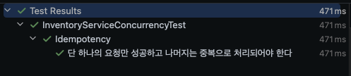 여러 스레드가 동일한 멱등키와 동일한 재고 차감 요청을 동시에 보냈을 때 단 하나의 요청만 재고를 차감하고 나머지는 ALREADY_DEDUCTED 상태로 처리되는지 검증합니다